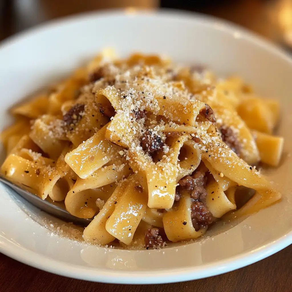 Step 13: Plate and Garnish Plate the Pasta alla Gricia immediately. Top each serving with extra cheese sauce, a sprinkle of the reserved crispy guanciale, and a generous grind of freshly cracked black pepper. Serve immediately and enjoy!