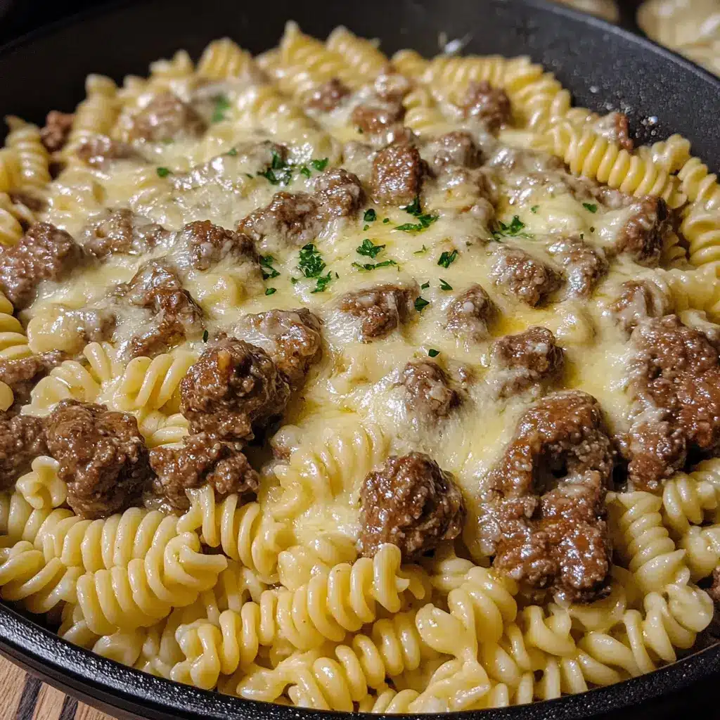 This delightful dish brings together the rich flavors of ground beef and rotini pasta, all enveloped in a creamy garlic Parmesan sauce. It’s an easy one-pan meal that is packed with flavor and sure to please everyone at the dinner table.