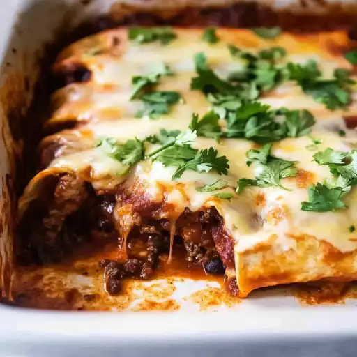 Beef enchiladas are a classic Mexican dish, featuring tortillas filled with a savory beef mixture, smothered in a flavorful enchilada sauce, and generously topped with melted cheese. This recipe offers a delicious and satisfying meal that is perfect for family dinners, gatherings, or any occasion where you want to enjoy a taste of authentic Mexican cuisine.