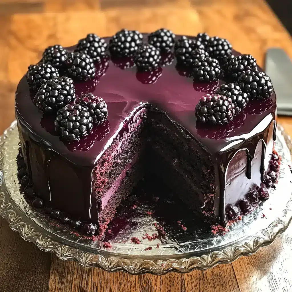 Description of this recipe: This Blackberry Velvet Gothic Cake is a show-stopping dessert that combines the intense flavor of black cocoa with the bright, juicy tang of fresh blackberries. Decadent layers of moist, dark chocolate cake are filled with a luscious blackberry filling and coated in a smooth, glossy chocolate ganache. The dramatic color palette and optional gothic-inspired decorations make it the perfect centerpiece for Halloween celebrations, gothic-themed parties, or any occasion that calls for a touch of dark elegance.