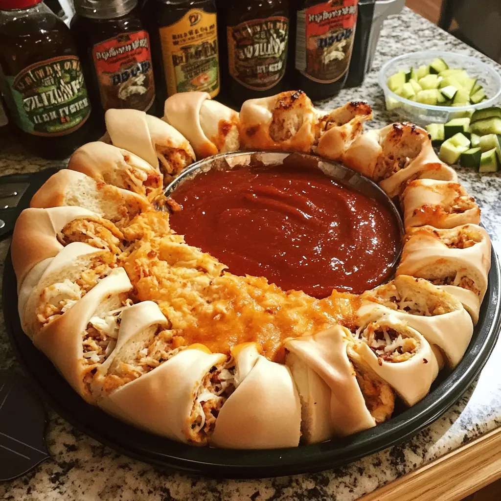 Yes, you can assemble the ring and freeze it before baking. Just make sure to wrap it tightly in plastic wrap and foil. When ready to bake, remove it from the freezer and bake directly from frozen, adding a few extra minutes to the cooking time. - What dips pair well with this dish?