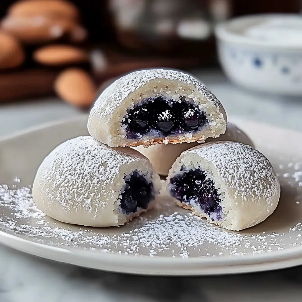 Blueberry Filled Almond Snowball Cookies are a delightful twist on a classic treat, offering a unique blend of flavors and textures that will impress your family and friends. With their delicate almond-infused dough, sweet-tart blueberry filling, and snowy coating of powdered sugar, these cookies are perfect for any occasion, from holiday gatherings to casual afternoon tea. The recipe is relatively easy to follow, making it accessible to bakers of all skill levels. Whether you’re looking to add a touch of elegance to your dessert spread or simply want to enjoy a delicious homemade treat, these cookies are sure to become a new favorite. So gather your ingredients, preheat your oven, and get ready to create a batch of these irresistible Blueberry Filled Almond Snowball Cookies.