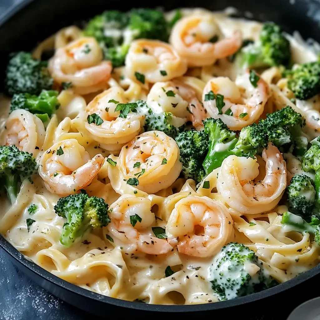 Description: This Broccoli Shrimp Alfredo is a creamy, decadent pasta dish that’s surprisingly easy to make. Tender shrimp and vibrant broccoli florets are tossed in a rich and flavorful homemade Alfredo sauce, all coating perfectly cooked fettuccine. It’s a satisfying and elegant meal perfect for a weeknight dinner or a special occasion.