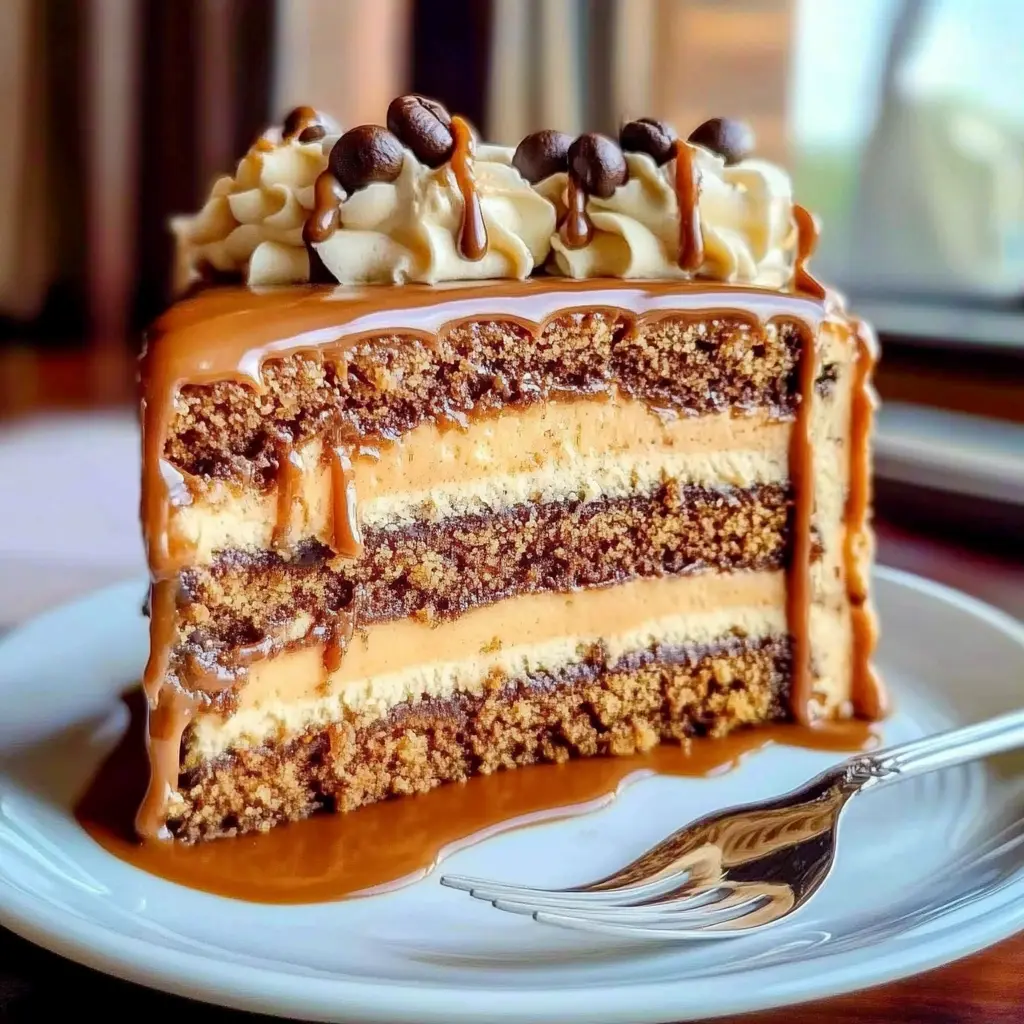 Serve the Caramel Coffee Layer Cake Slice immediately or chill for later enjoyment.