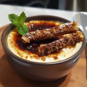 Description: This recipe presents a classic dessert, the velvety smooth vanilla crème brûlée, elevated with homemade almond puff pastry sticks …
