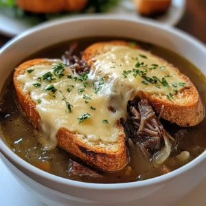 Description of this recipe:French Onion Short Rib Soup with Gruyère Toast is a luxurious, hearty dish that combines the rich …