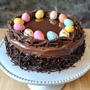 Description of this recipe: This show-stopping Chocolate Easter Egg Nest Cake is a decadent chocolate lover’s dream! It combines a …