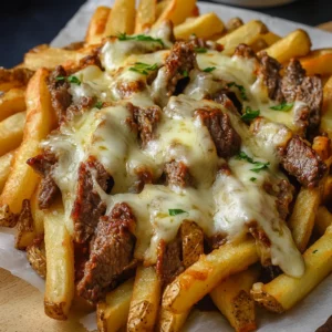 Description of this recipe:A decadent twist on classic fries, loaded with tender steak, sautéed veggies, and gooey melted cheese — …