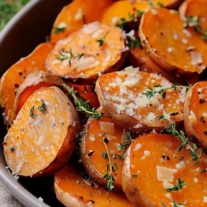 Roasted Sweet Potatoes with Garlic and Parmesan