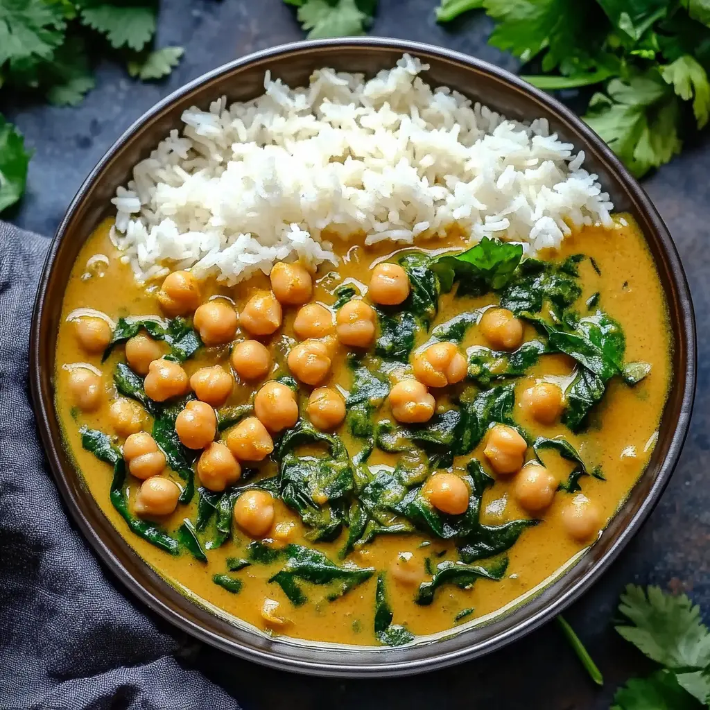 The Chickpea Spinach Coconut Curry is a testament to the fact that delicious and healthy meals can be both easy to prepare and incredibly satisfying. This recipe offers a delightful combination of flavors, textures, and aromas, making it a culinary experience that is sure to impress. Whether you are a seasoned cook or a beginner, this curry is a perfect option for a quick and nutritious weeknight dinner. Its versatility allows you to customize it to your liking, adding or substituting ingredients to create a dish that perfectly suits your taste preferences. So, embrace the simplicity of this recipe, experiment with different variations, and enjoy the journey of creating a culinary masterpiece that will nourish your body and soul. The Chickpea Spinach Coconut Curry is more than just a meal; it is a celebration of flavors, a tribute to the power of plant-based ingredients, and a reminder that healthy eating can be both enjoyable and rewarding.