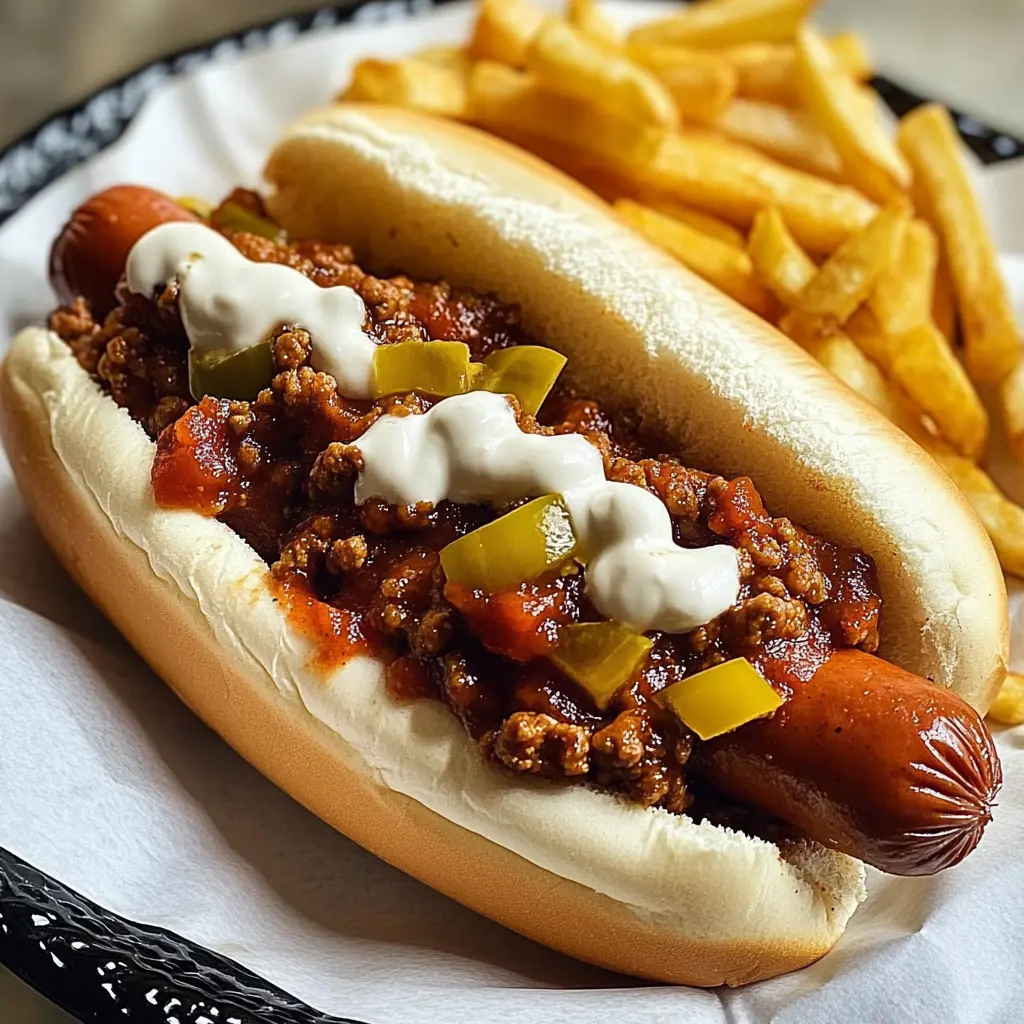 You’ll love this chili dog recipe because it’s incredibly easy to make, satisfyingly delicious, and endlessly customizable. Whether you’re a seasoned chef or a kitchen novice, you can whip up a batch of these bad boys in no time. The chili comes together quickly on the stovetop, and the hot dogs can be grilled, pan-fried, or even microwaved (though I strongly recommend grilling for that authentic char). But the real magic lies in the flavor. The combination of savory ground beef, diced tomatoes, and a blend of chili powder, cumin, and smoked paprika creates a chili that’s both robust and nuanced. The melted cheddar cheese adds a creamy, comforting element, while the optional toppings like diced onions, mustard, and jalapeños allow you to tailor the chili dog to your personal preferences. Plus, this recipe is a crowd-pleaser. Kids and adults alike will devour these chili dogs, making them the perfect choice for family gatherings, potlucks, or any occasion where you want to serve up something quick, easy, and utterly irresistible. It’s a guaranteed home run every time. Moreover, it’s an amazing dish for game days, movie nights, or any time you crave a little bit of classic comfort food.