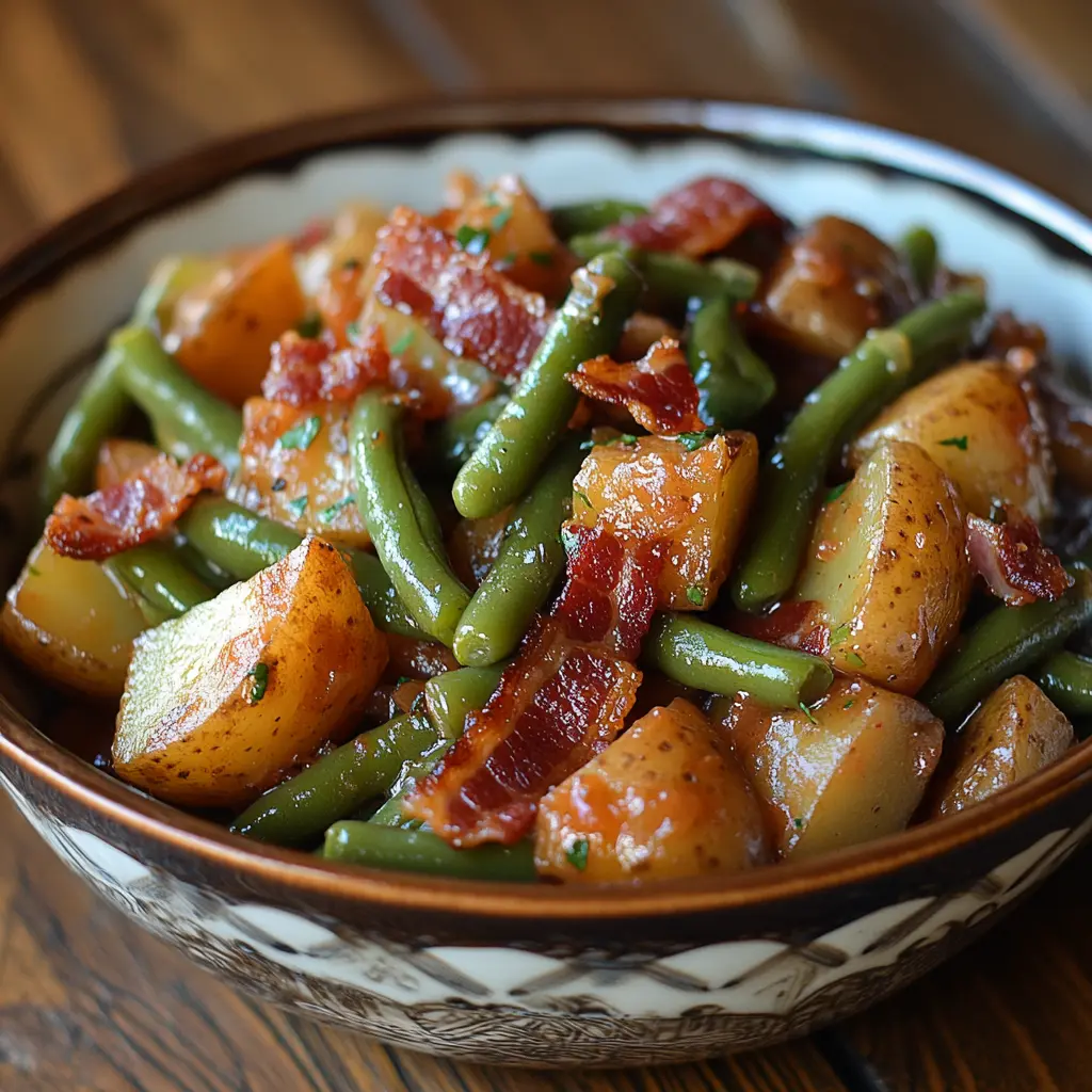 Country Ranch Green Beans and Potatoes with Bacon is a delightful side dish that captures the heart of Southern cooking with its blend of fresh vegetables, savory bacon, and robust ranch seasoning. This dish not only boasts vibrant colors but also layers of flavor that make it an instant favorite at family gatherings or weeknight dinners.