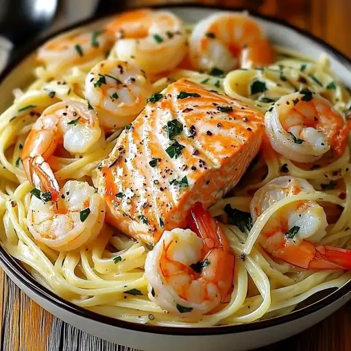This Creamy Garlic Butter Salmon & Shrimp Pasta is more than just a recipe; it’s an experience. It’s a celebration of flavors, a testament to the magic of simple ingredients, and a way to bring a touch of gourmet elegance to your home. Whether you’re cooking for a special occasion or simply want to treat yourself to a delicious meal, this pasta is sure to impress. So gather your ingredients, follow the steps, and get ready to enjoy a culinary masterpiece!