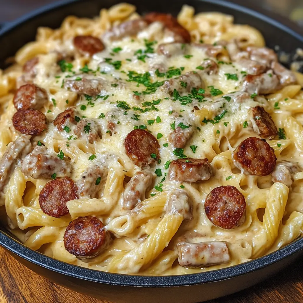 Serve the Creamy Smoked Sausage Pasta in large, shallow bowls. Garnish with freshly grated Parmesan cheese and a sprinkle of dried parsley for an elegant touch. Pair it with a side salad and some crusty bread for a complete meal.