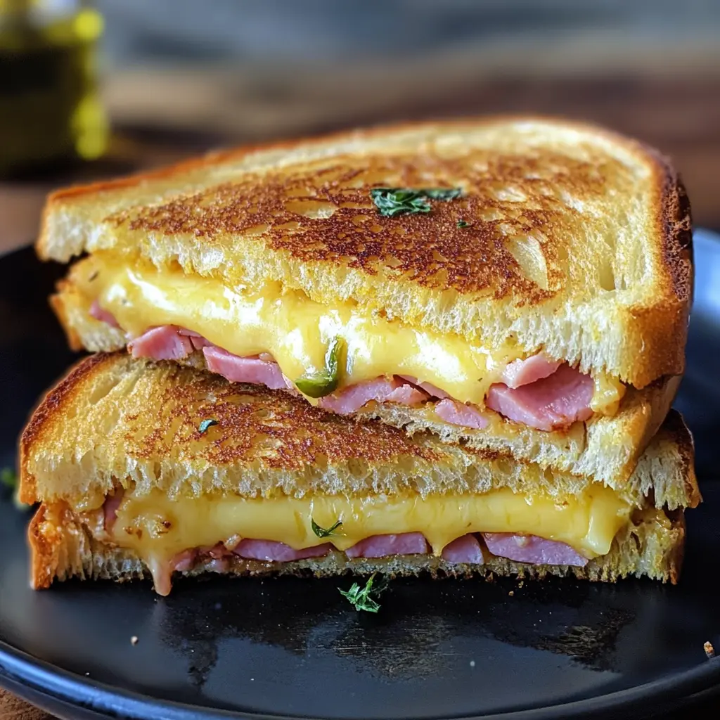 Spread the cheese mixture evenly over the unbuttered sides of both bread slices. Ensure the entire surface is covered to maximize the cheesy goodness in every bite. Place the thick slice of ham on top of the cheese mixture on one slice of bread. The ham should be of good quality and thickness to provide a substantial and satisfying bite. Carefully sandwich the two bread slices together, ensuring the buttered sides are facing outwards. This configuration is crucial for achieving a perfectly toasted and crispy exterior.