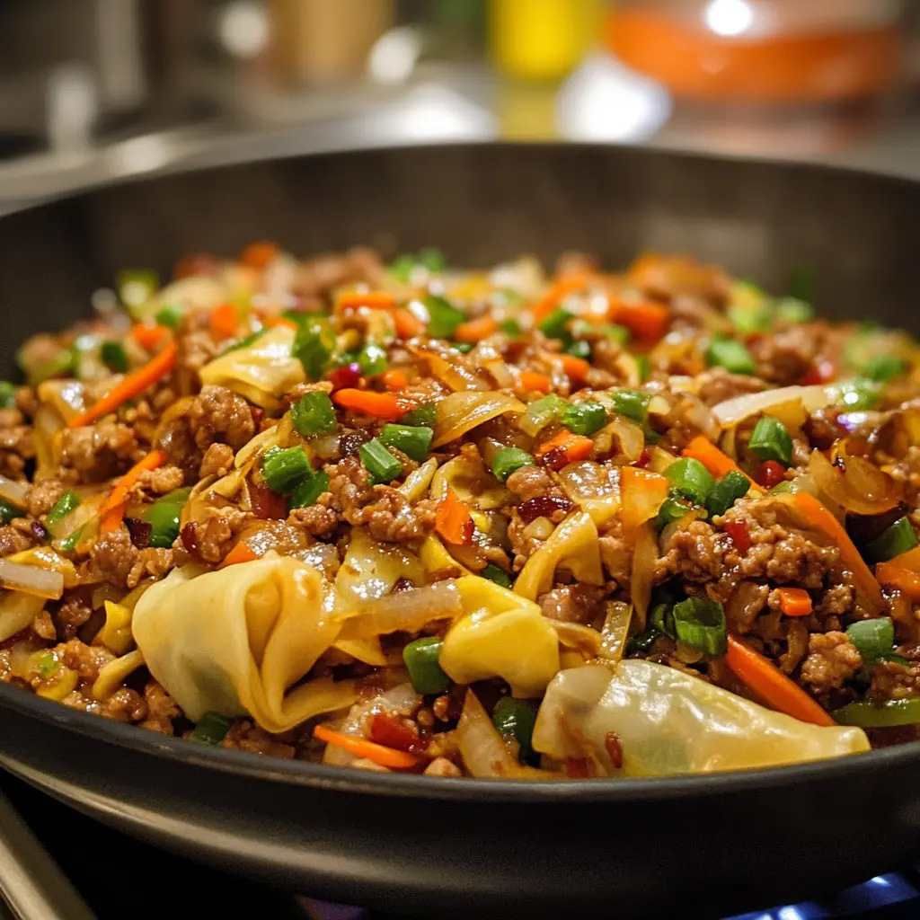 Egg Roll Stir Fry is a delightful and healthy twist on traditional egg rolls. This deconstructed version features all the classic ingredients—crunchy cabbage, sweet carrots, and savory ground meat—combined in a quick and easy stir-fry that bursts with flavor. Each bite is a harmonious blend of textures and tastes, making it an ideal weeknight dinner.