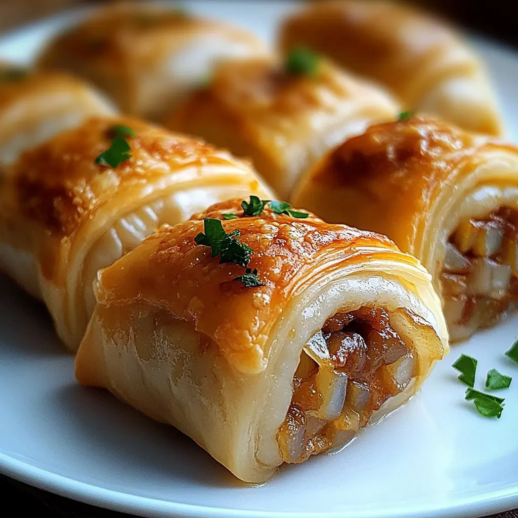 Description of this recipe: These French Onion Sausage Rolls are a delicious twist on the classic sausage roll, infused with the rich, savory flavors of French onion soup. Imagine flaky, golden puff pastry enveloping a juicy, flavorful sausage filling with hints of caramelized onions, garlic, and smoky bacon. Perfect as a party appetizer, a satisfying snack, or even a light meal, these sausage rolls are sure to be a crowd-pleaser.