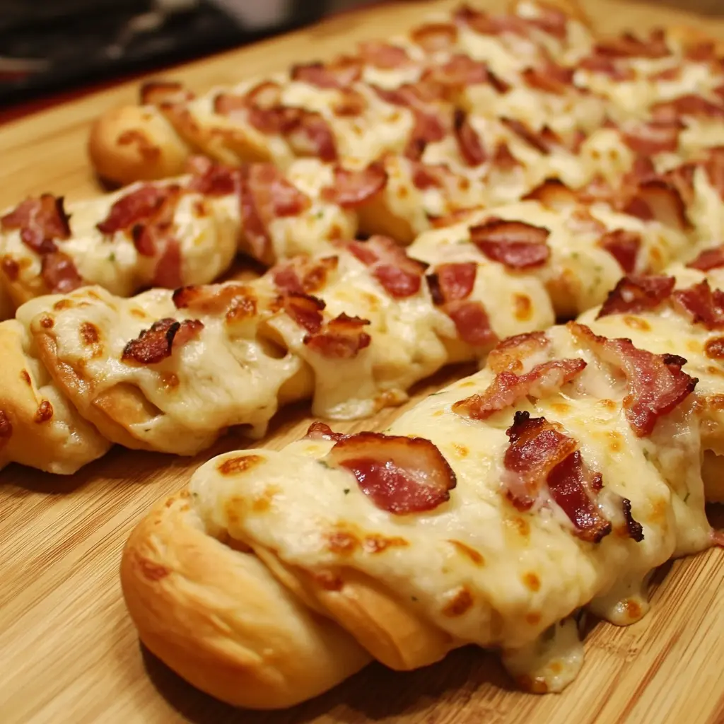 This recipe is a fantastic way to elevate your pizza night or any casual gathering with friends and family. The combination of garlic butter and bacon creates an irresistible aroma that will have everyone flocking to the kitchen. They are easy to make, require minimal ingredients, and are sure to impress with their delicious flavor and appealing presentation. Plus, the creamy Alfredo sauce for dipping adds an extra layer of indulgence that makes these twists utterly addictive.