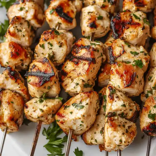 Grilled Chicken Kabobs Grilled chicken kabobs are a delicious and healthy way to enjoy chicken. They are perfect for a summer barbecue or a quick and easy weeknight meal. This recipe features tender, juicy chicken marinated in a vibrant herb and garlic mixture, then grilled to perfection on skewers. The result is a flavorful and visually appealing dish that is sure to impress.