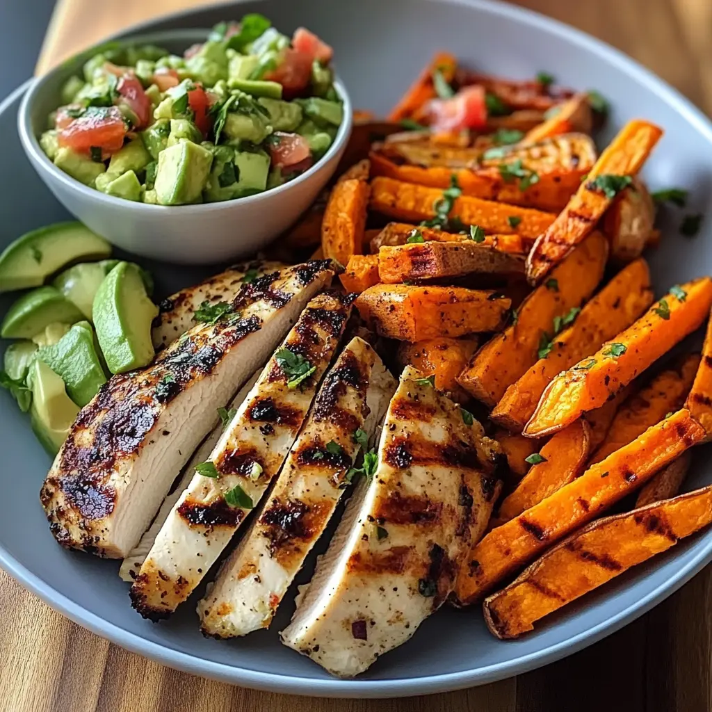 Description of this recipe: This recipe offers a vibrant and healthy twist on classic comfort food. Tender, flavorful grilled chicken tenders are paired with crispy, oven-baked sweet potato fries and a refreshing avocado salsa. It’s a balanced and satisfying meal that’s easy to prepare and packed with flavor. The creamy dipping sauce adds the perfect finishing touch.