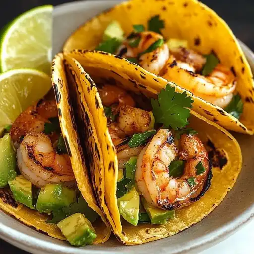 Serve the tacos immediately with lime wedges for squeezing on top. The lime juice adds a bright, citrusy note that complements the smoky shrimp and creamy avocado.