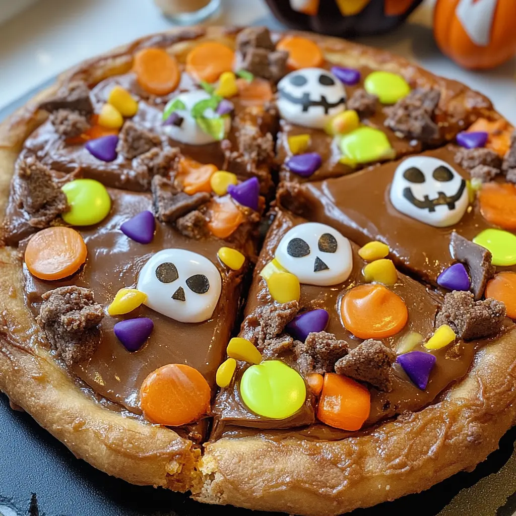 This recipe is not only incredibly simple to prepare, but it also invites creativity, allowing you to decorate your dessert pizza with an array of Halloween-themed candies. It’s a great project for kids and adults alike, making it a perfect addition to Halloween gatherings, parties, or even a cozy night at home. The best part? You can personalize it to suit your tastes and the preferences of your guests, ensuring everyone enjoys a slice of Halloween magic!