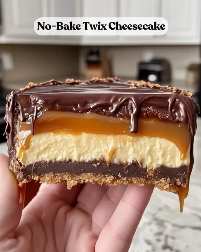 This Homemade No-Bake Twix Cheesecake is an indulgent dessert that brings together the best flavors of chocolate and caramel in a creamy cheesecake form. Its simplicity and deliciousness make it a perfect choice for any occasion. Whether you’re celebrating a special event or just treating yourself, this cheesecake will not disappoint. Enjoy every layer and share it with your loved ones for an unforgettable dessert experience!
