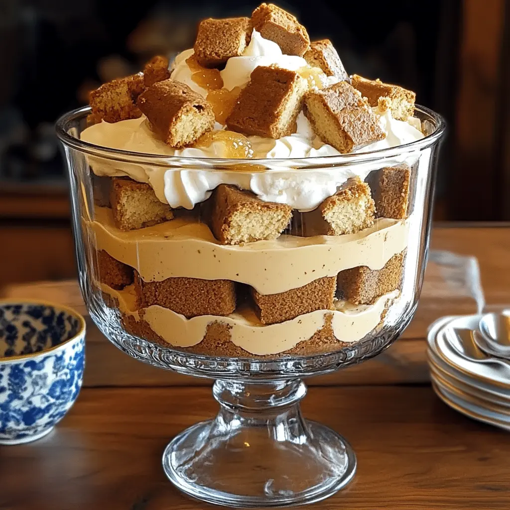 Cover the assembled trifle with plastic wrap and refrigerate it for at least 4 hours, or preferably overnight, to allow the flavors to meld and the layers to set. This chilling time is crucial for developing the best flavor and texture of the trifle. Before serving, you can garnish the trifle with a sprinkle of ground cinnamon, a dusting of cocoa powder, or a few gingersnap cookies for an extra touch of visual appeal.