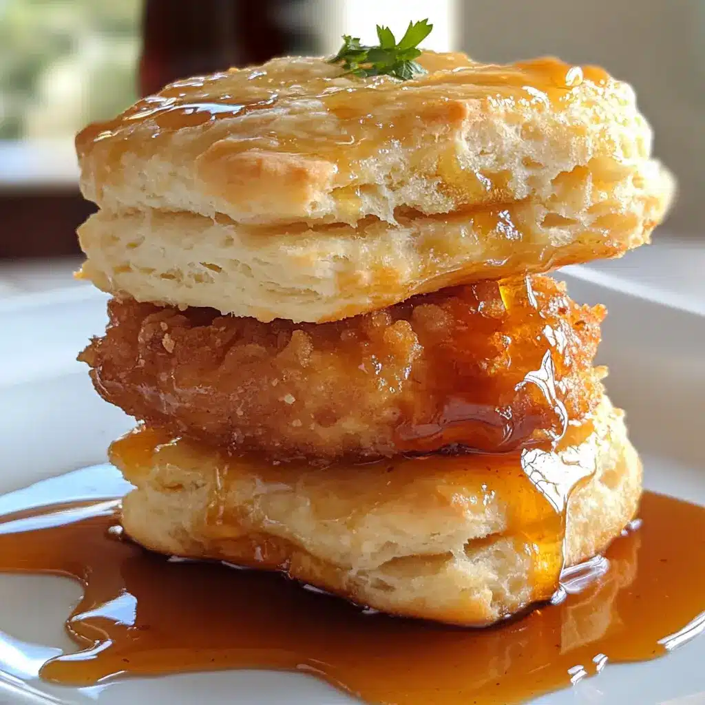 Hot Honey Chicken Biscuits are a culinary revelation, born from the desire to combine the comforting simplicity of a chicken biscuit with the exciting flavor of hot honey. This recipe starts with tender, flaky biscuits, made from scratch with simple ingredients. These biscuits are the perfect vessel for the crispy, juicy chicken that follows. Each chicken cutlet is generously coated in a flavorful blend of spices and fried to golden perfection. Finally, a generous drizzle of hot honey brings everything together, creating a sweet, spicy, and utterly irresistible flavor experience. These biscuits are far more than just a meal; they are a sensory delight that will leave you craving more. Get ready to elevate your brunch game and impress your friends and family with this unique and delectable dish!