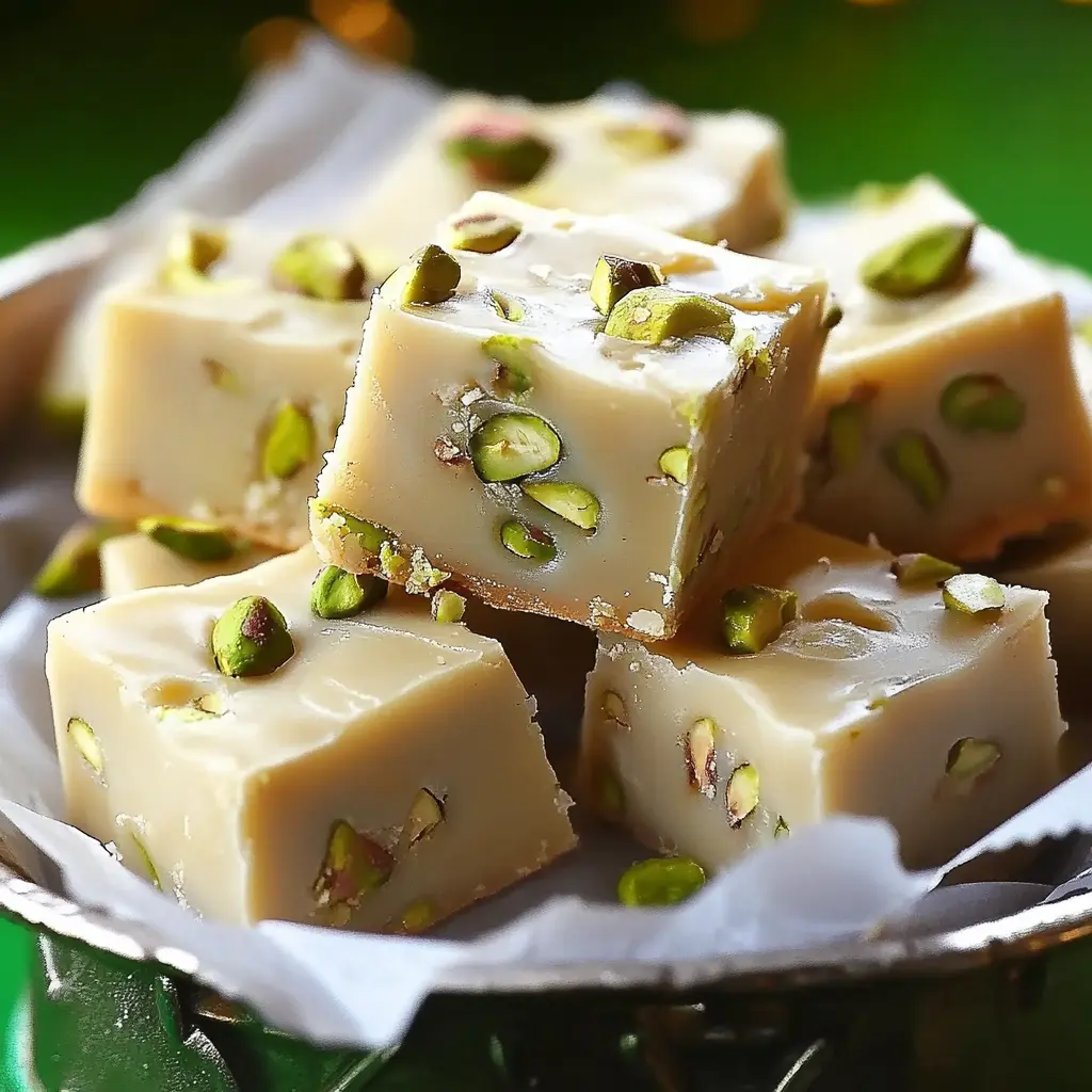- Do not overmix the fudge after adding the pistachios to maintain their texture.
