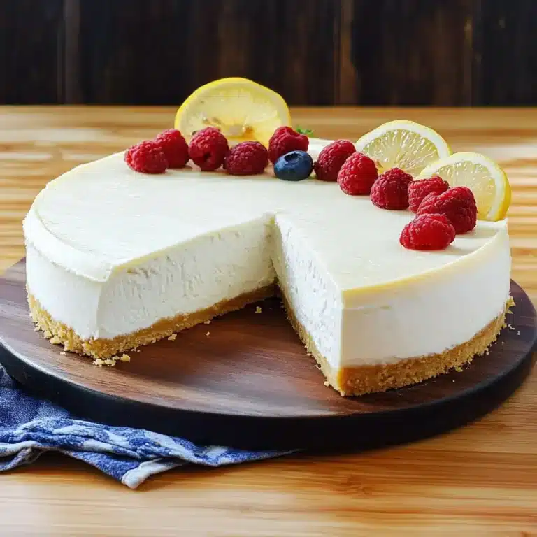 This Lemon Greek Yogurt Cheesecake is a delightful and refreshing dessert that combines the tangy flavors of lemon and the creamy texture of Greek yogurt. It’s a perfect treat for any occasion, offering a lighter and healthier alternative to traditional cheesecake. With its easy preparation and impressive presentation, this recipe is sure to become a favorite in your dessert repertoire. Whether you’re hosting a dinner party or simply craving something sweet, this cheesecake is guaranteed to impress. The combination of the crisp biscuit base, the smooth and tangy filling, and the fresh berry topping makes for a truly unforgettable dessert experience. So, gather your ingredients and prepare to indulge in this guilt-free pleasure!