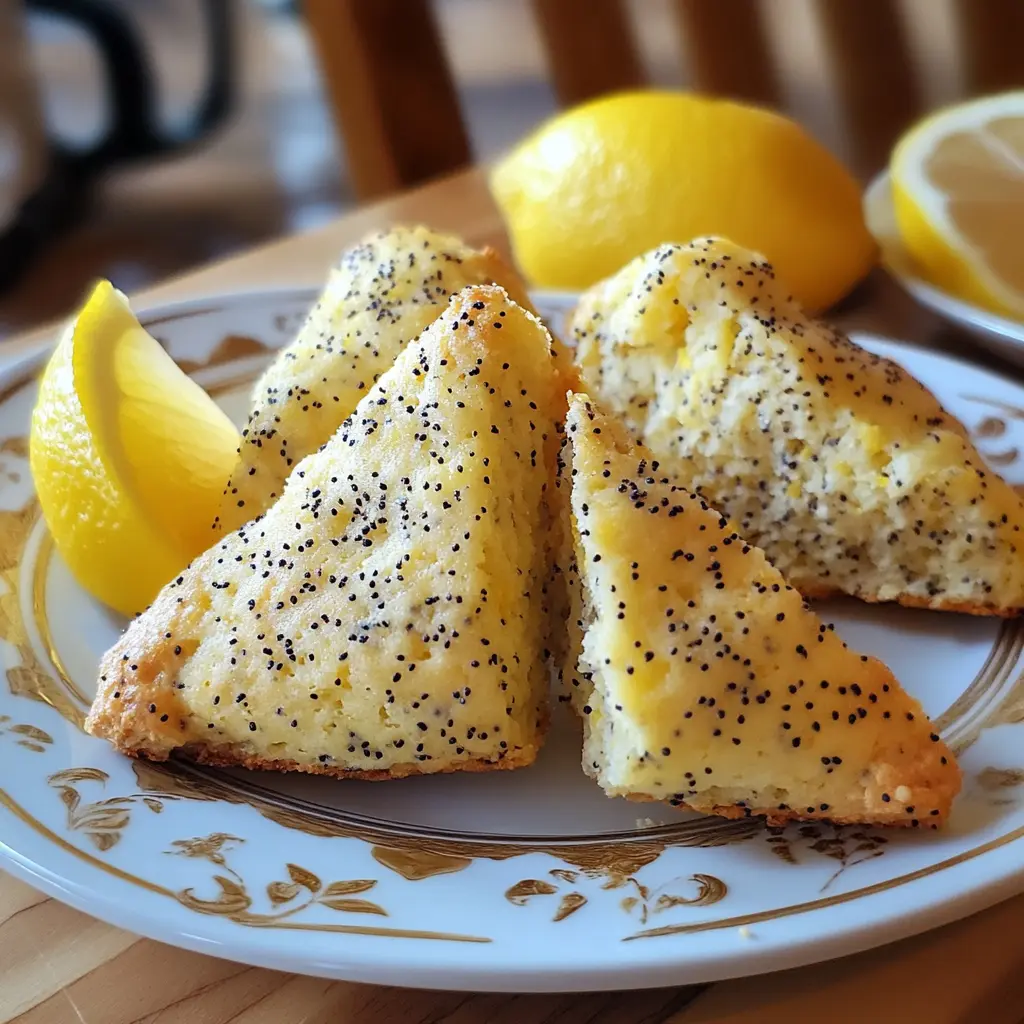 These Lemon Poppyseed Scones are best enjoyed warm, straight from the oven. Serve them with a pat of butter or a drizzle of honey for an extra touch of indulgence. They pair wonderfully with a cup of tea or coffee, making them an ideal addition to any brunch spread. For a special treat, consider serving them alongside fresh fruit or a light lemon curd.