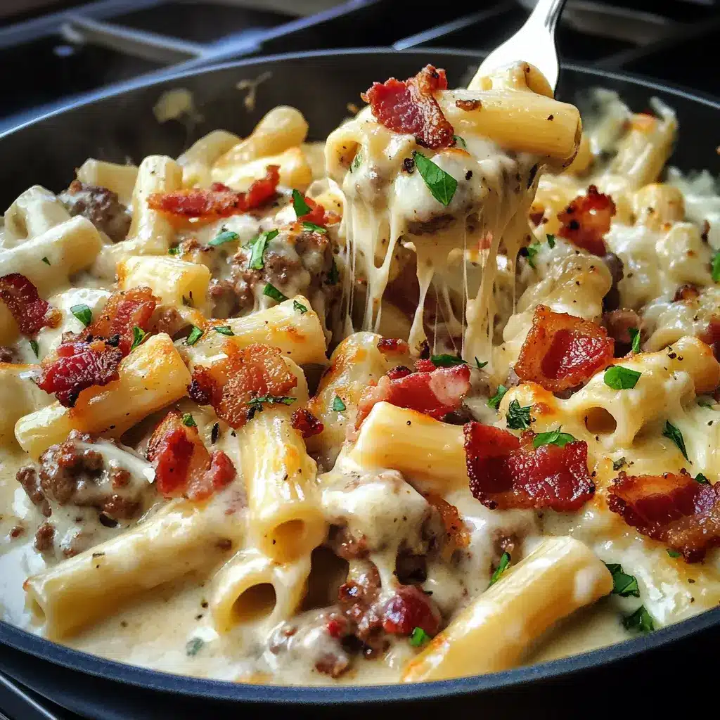 To elevate the presentation of your Loaded Bacon Cheeseburger Alfredo Pasta, serve it in individual bowls and sprinkle additional cheese on top. You can also add a few crispy bacon bits and a sprig of parsley for a beautiful touch. Pair it with a side salad or garlic bread for a complete meal.