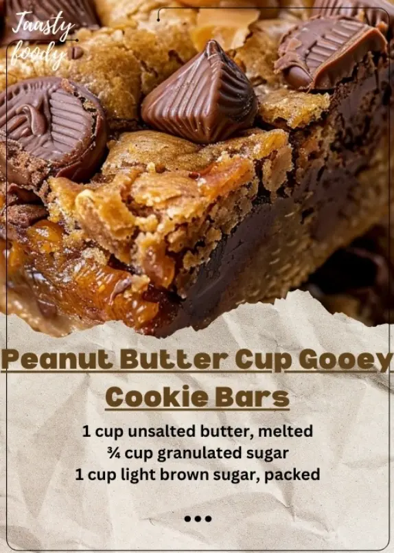 Conclusion: These Peanut Butter Cup Gooey Cookie Bars are a delightful combination of sweet and salty, chewy and gooey, making them a perfect treat for any occasion. Whether you’re a peanut butter lover or a chocolate enthusiast, these bars are sure to satisfy your cravings and impress your guests with their decadent flavors and textures.