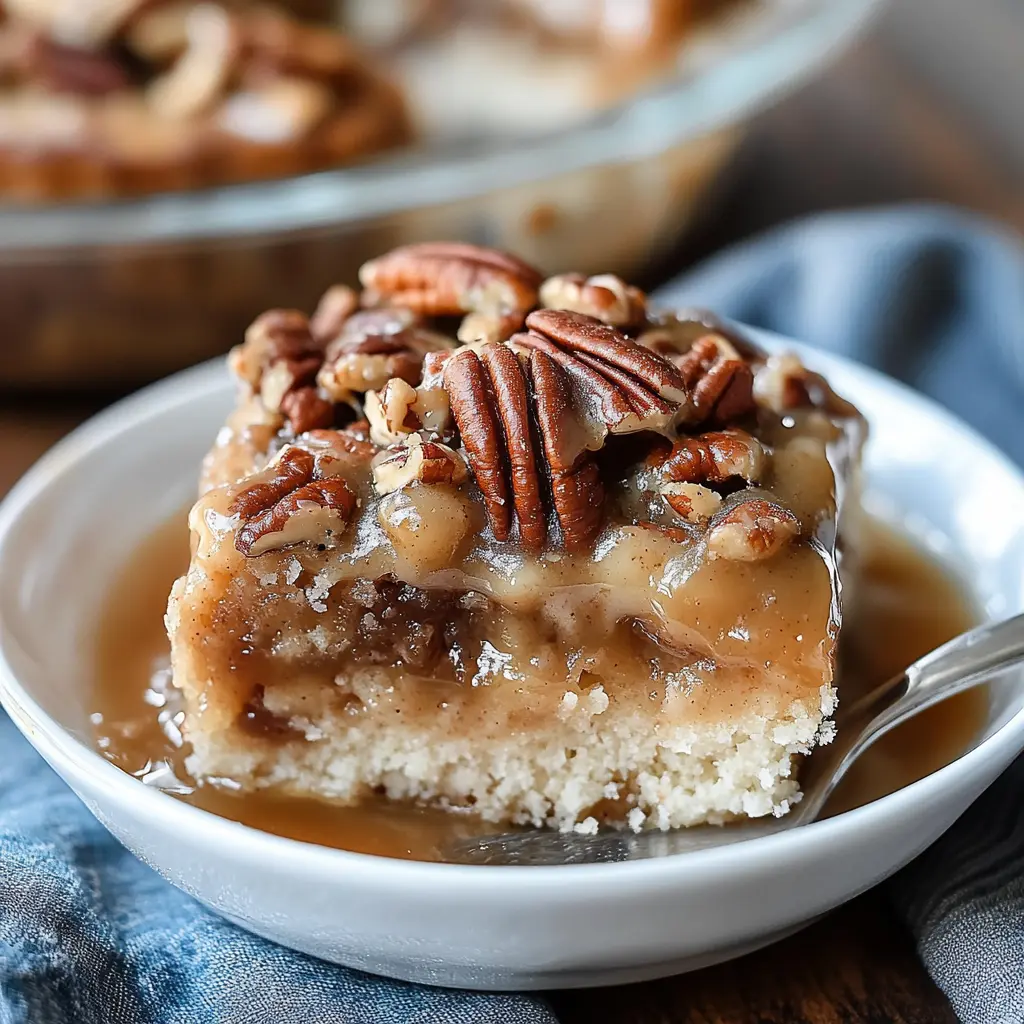 You will absolutely adore this Pecan Pie Pudding Cake for several irresistible reasons. Firstly, it’s incredibly easy to make. Forget about complicated pastry techniques and finicky crusts. This recipe uses simple ingredients and straightforward instructions, making it a perfect choice for beginner bakers or anyone looking for a quick and impressive dessert. Secondly, the flavour profile is simply divine. The warm, nutty notes of pecans, combined with the caramel-like sweetness of brown sugar and the comforting vanilla aroma, create a symphony of flavours that will tantalize your taste buds. The cake is moist and tender, providing a perfect base for the gooey, rich pudding that forms underneath the pecan topping. Thirdly, the texture is a dream. The combination of the soft cake, the crunchy pecans, and the silky pudding creates a delightful contrast that will keep you coming back for more. It’s a dessert that satisfies on every level. Finally, it’s a crowd-pleaser. Whether you’re serving it to family, friends, or bringing it to a potluck, this Pecan Pie Pudding Cake is guaranteed to be a hit. Its comforting and familiar flavors, combined with its unique and irresistible texture, make it a dessert that everyone will love.