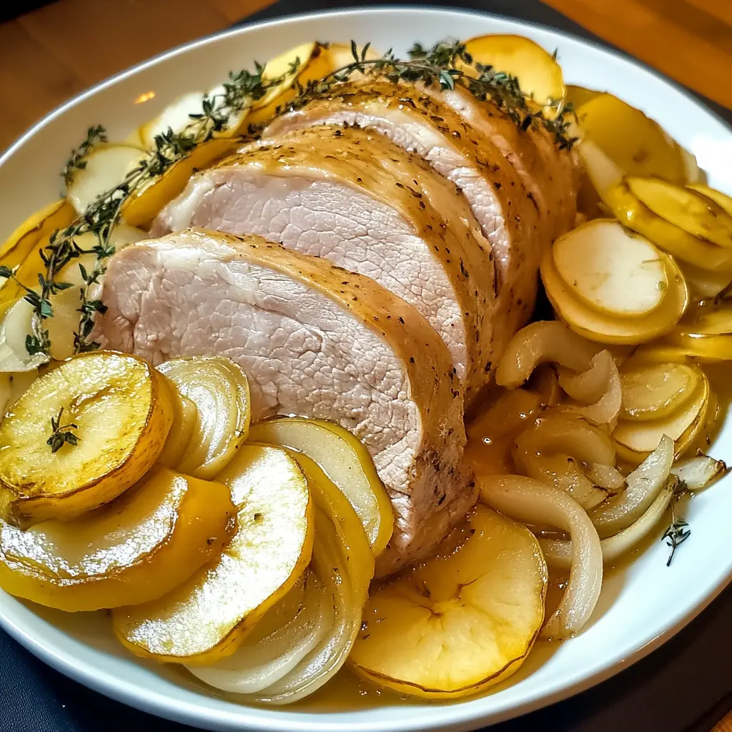 Description: This Pork Roast with Apples and Onions is a comforting and flavorful dish perfect for a weeknight dinner or a weekend gathering. Tender pork loin is roasted alongside sweet apples, savory onions, and fragrant garlic, creating a symphony of tastes and aromas that will fill your kitchen with warmth. The rosemary adds an earthy depth that complements the sweetness of the apples and the richness of the pork. This recipe is surprisingly simple to prepare, making it a great option for both experienced cooks and those new to roasting.
