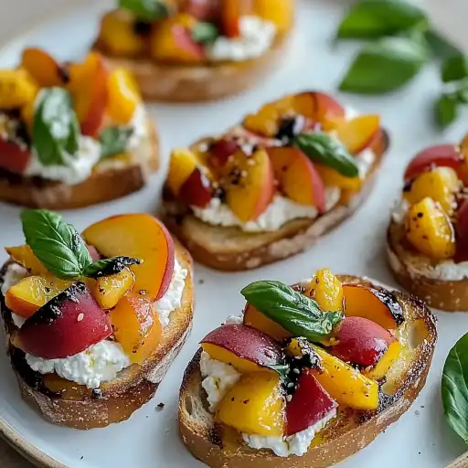 To add a final touch of elegance and flavor, garnish the bruschetta with extra basil leaves, a sprinkle of cracked black pepper, or a drizzle of balsamic glaze. The balsamic glaze adds a touch of sweetness and acidity that complements the peaches and ricotta beautifully. Serve the bruschetta immediately for the best texture. The toasted bread will soften over time, so it’s best to assemble the bruschetta just before serving.