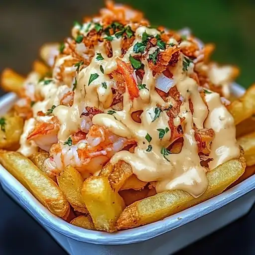 - Extra Cheesy? For an extra layer of indulgence, add shredded Parmesan or Monterey Jack cheese to the fries before topping with the seafood. The cheese will melt beautifully and add a gooey, savory element.