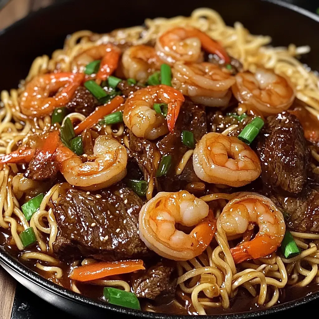 Description of this recipe: This recipe for Shrimp Teriyaki Steak Noodles is a dynamic and flavorful dish that combines tender steak and succulent shrimp with hearty udon noodles and crisp-tender vegetables, all bathed in a luscious homemade teriyaki sauce. It’s a complete meal that’s both satisfying and surprisingly quick to prepare, making it perfect for busy weeknights or a special weekend treat.