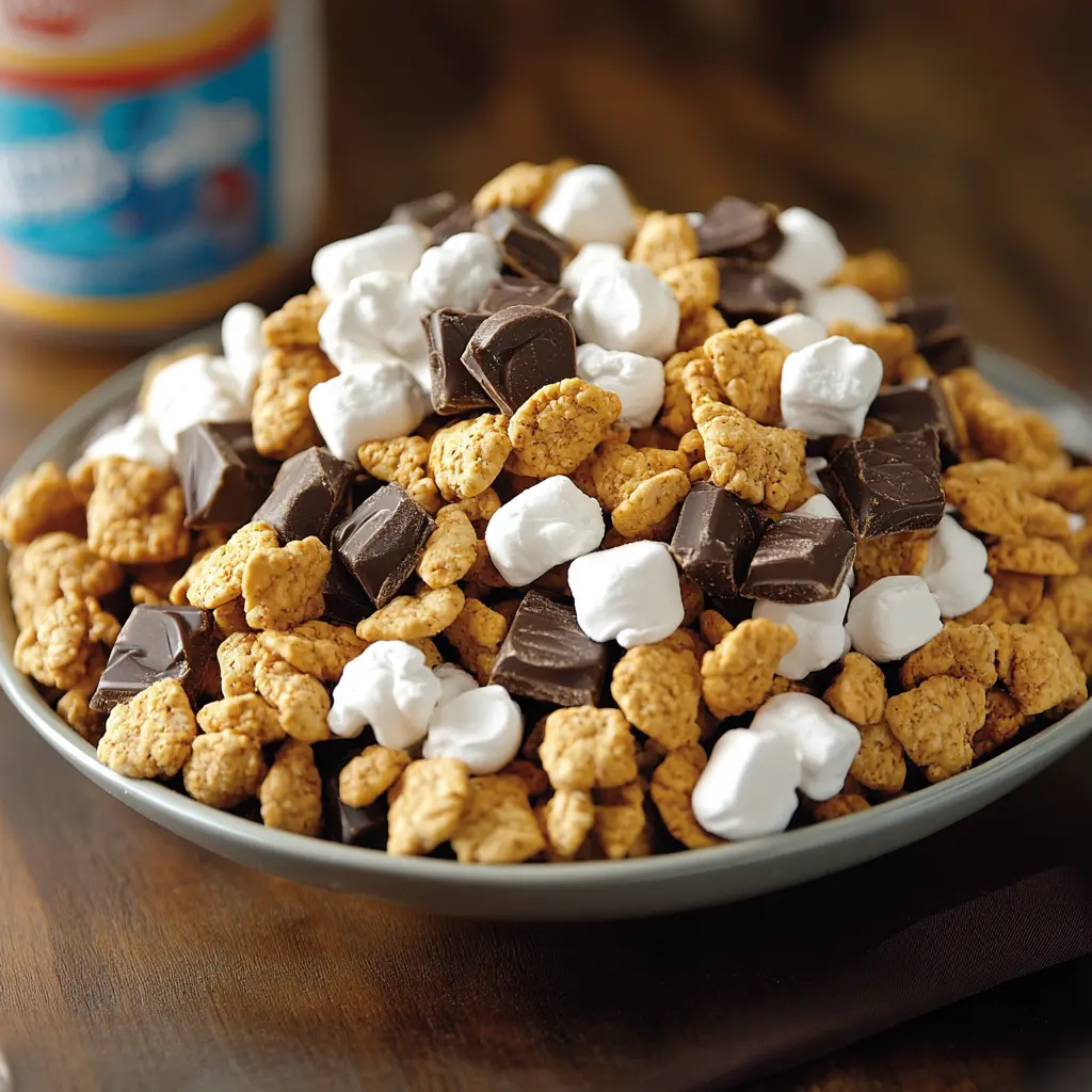 Description of this recipe: This S’mores Trail Mix captures all the beloved flavors of the classic campfire treat – graham crackers, marshmallows, and chocolate – in a convenient, portable, and no-bake form. It’s the perfect snack for road trips, hikes, movie nights, or simply satisfying a sweet craving any time of day. It’s also incredibly easy to make, requiring only three ingredients and minimal effort, making it a fun and engaging activity for kids and adults alike.