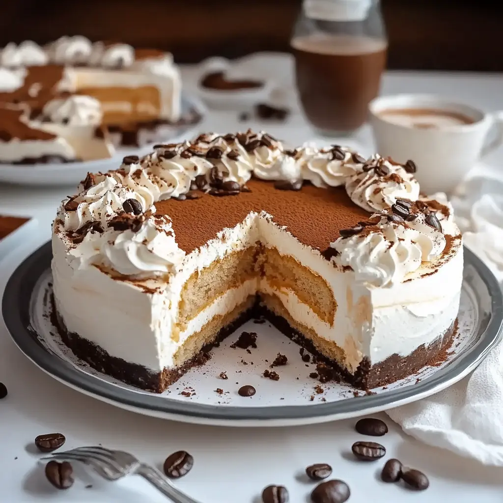 Description of this recipe: This no-bake cake is a delightful twist on the classic tiramisu, offering a lighter, creamier, and equally satisfying dessert experience. Layers of espresso-soaked biscuits are interspersed with a luscious cream cheese filling, creating a harmonious blend of rich coffee flavor and tangy sweetness. Perfect for any occasion, this cake is simple to prepare and guaranteed to impress.