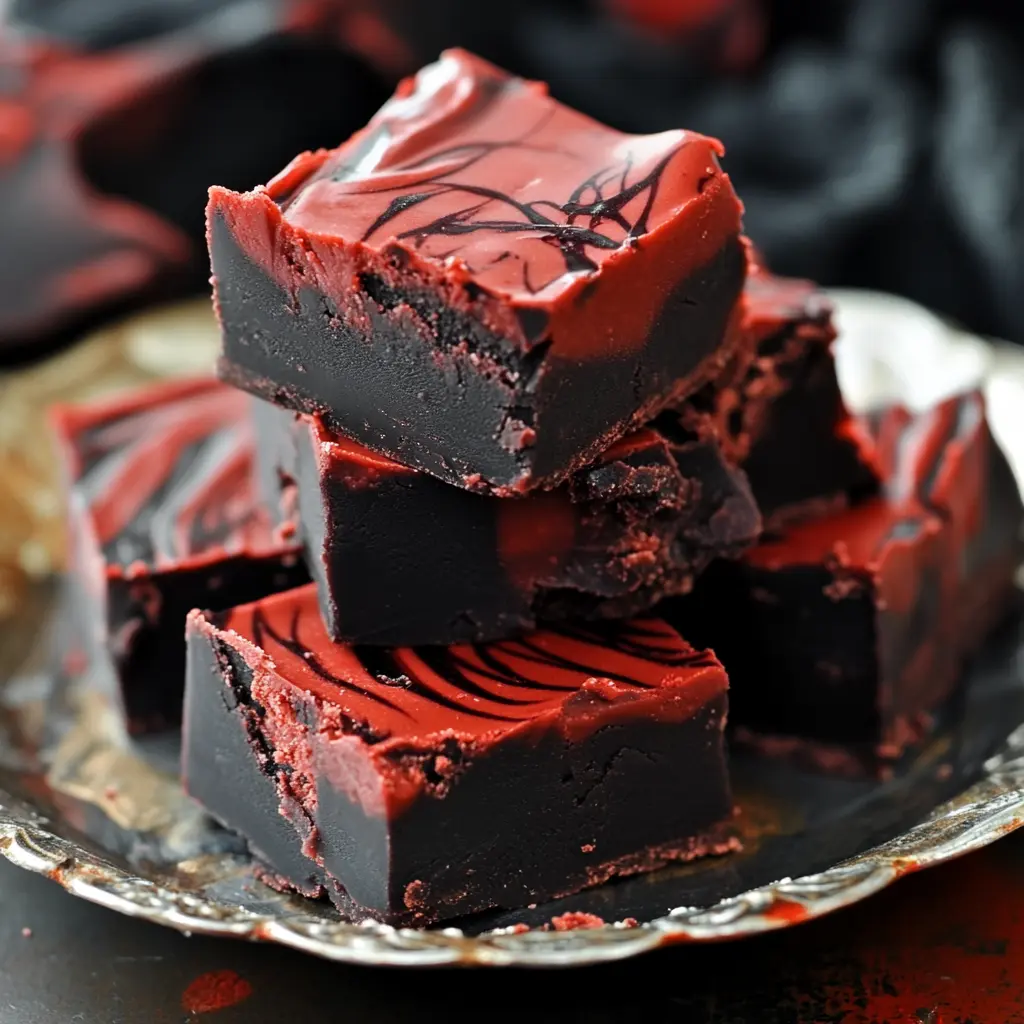 Description of this recipe: Vampire Fudge is a show-stopping dessert that perfectly blends rich chocolate flavor with a captivatingly blood-red swirl. This easy-to-make fudge features a dark chocolate base topped with a sweet, intensely colored red layer, creating a striking visual contrast that’s perfect for Halloween, themed parties, or any occasion where you want to add a touch of drama to your dessert table. The combination of white chocolate, cocoa, and a touch of vanilla delivers a delightful sweetness balanced by a subtle cocoa bitterness, resulting in a truly irresistible treat.