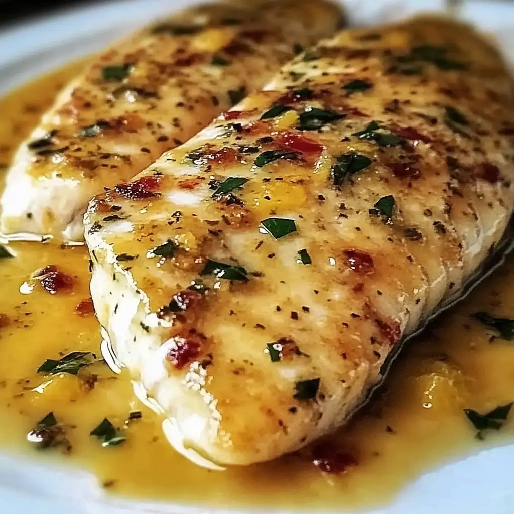 Spoon the warm lemon butter sauce generously over each fillet, ensuring that each piece of fish is well-coated.